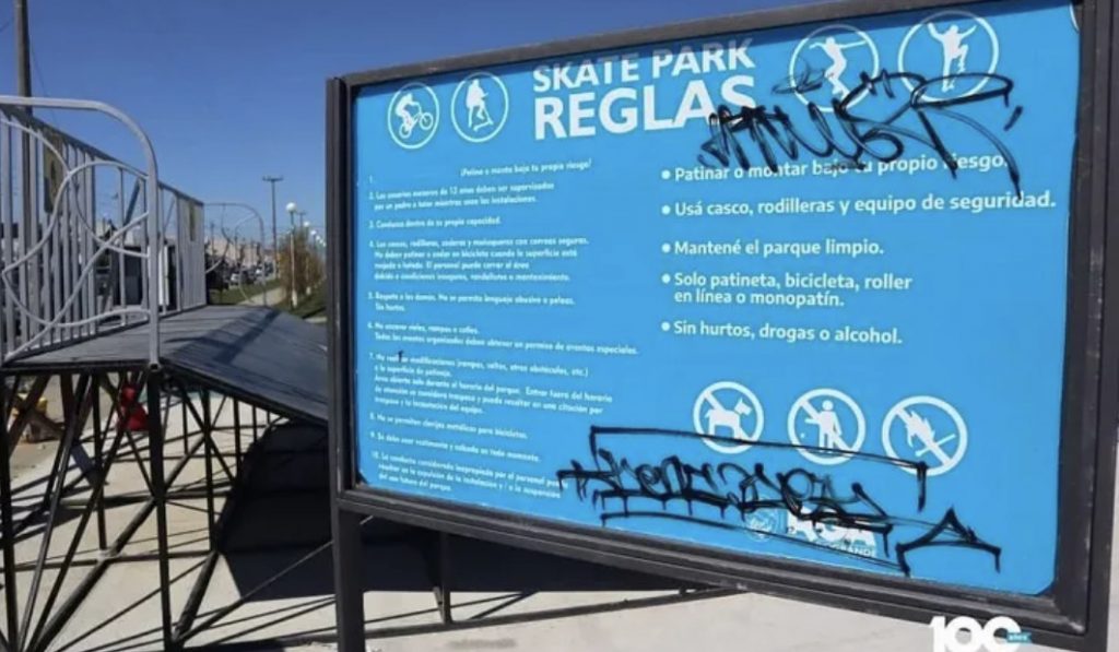 Luego del acto inaugural, en las redes sociales del municipio indicaron que «el nuevo skate park al aire libre en la Plaza de los Animales lo pensamos para vos. Para los chicos y chicas del barrio, de la ciudad», resaltando que «el domingo lo dejamos a punto para poder inaugurarlo en las próximas horas, pero anoche hicieron esto», acompañando imágenes de pintadas en el lugar.