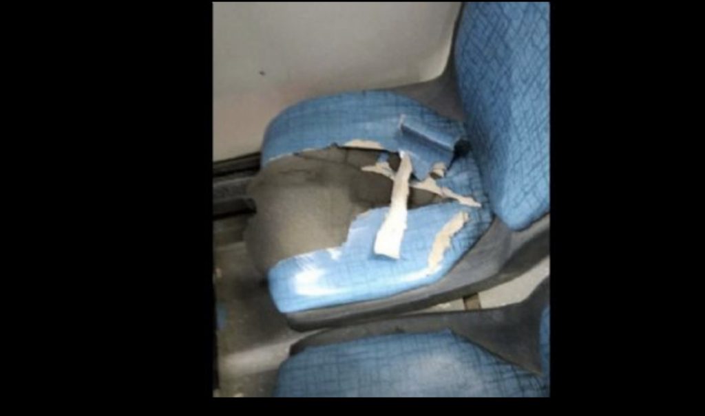 En las imágenes difundidas se observa cómo uno de los asientos ubicado en el sector de las ventanillas se encuentra totalmente con su tapizado arrancado, claramente de manera intencional.