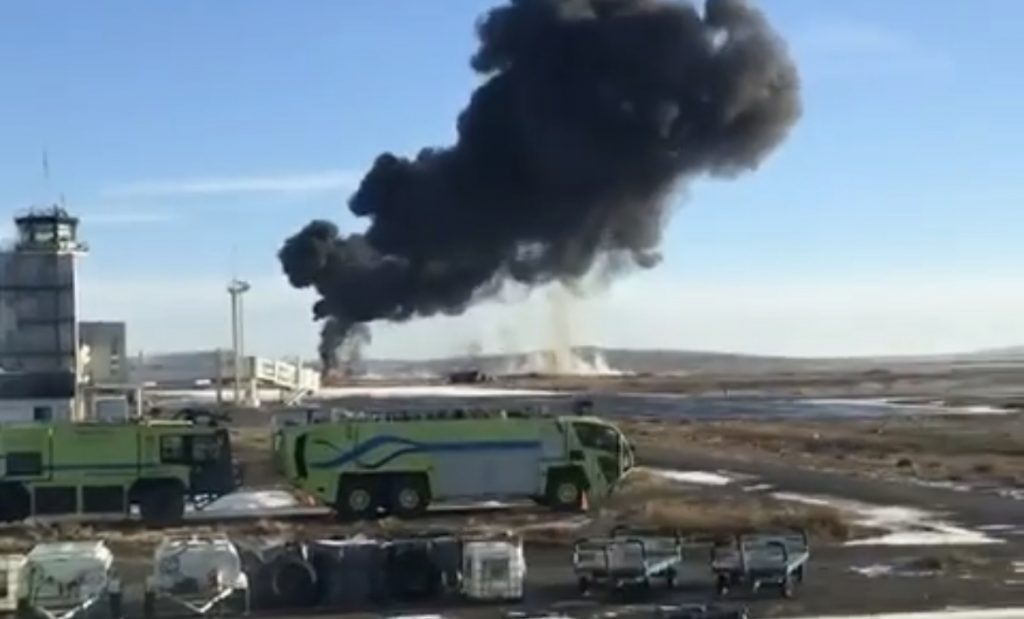 Una importante columna de humo proveniente de la pista del aeropuerto y una fuerte explosión dieron cuenta del siniestro. Habría cuatro víctimas fatales.