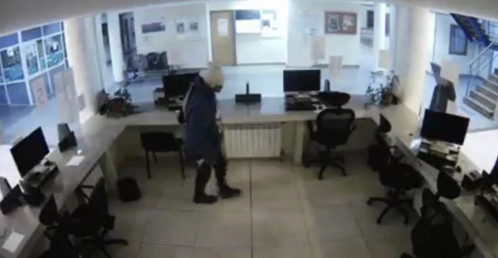 En las imágenes se puede ver cómo un hombre, no identificado, ingresa al sector de turnos y roba dos ticketeras, además de revolver toda la documentación que aparecía sobre los escritorios.