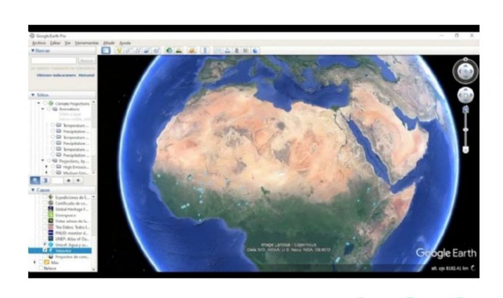 También podés abrir Google Earth y hacer clic en el timón del barco para encontrar Timelapse en la plataforma narrativa, Voyager, y así ver hacer guiadas interactivas.