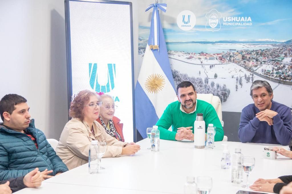 El intendente Walter Vuoto junto al senador nacional Matías Rodriguez y al subsecretario de Coordinación de Gestión municipal y ex intendente, Mario Daniele, recibió en sede de la intendencia a familiares y amigos de Miguel Ángel Torelli, quien fuera intendente de la ciudad de Ushuaia antes del golpe cívico militar de 1976.