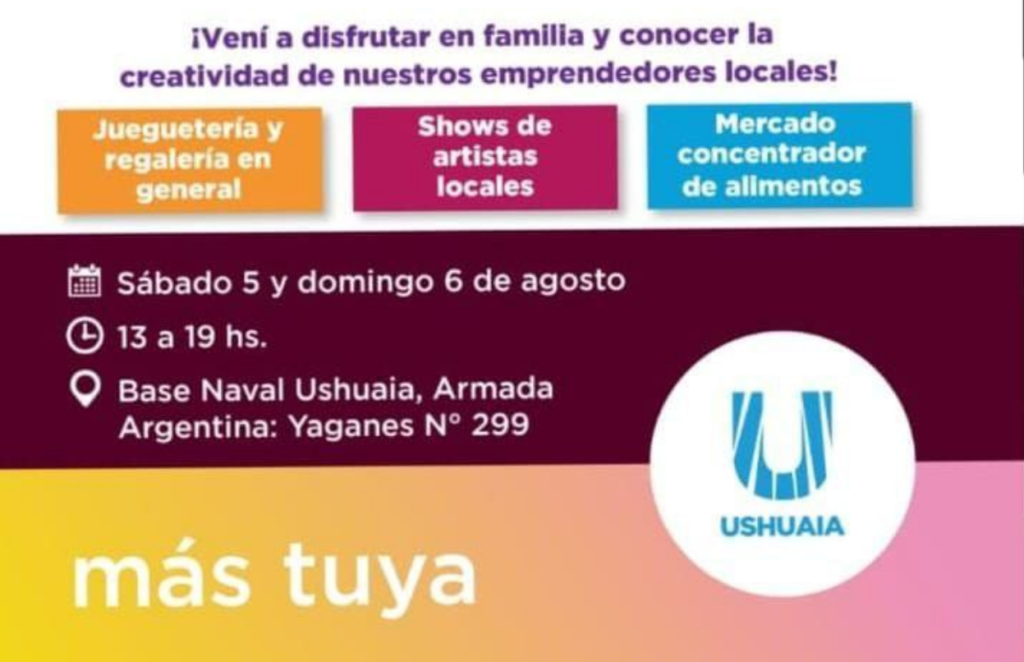 La Municipalidad de Ushuaia, a través de la Secretaría de Políticas Sociales, Sanitarias y Derechos Humanos, llevará adelante este sábado 5 y domingo 6 de agosto una nueva edición de Expo de Emprendedores de Economía Social, esta vez en el marco del Mes de las Infancias.