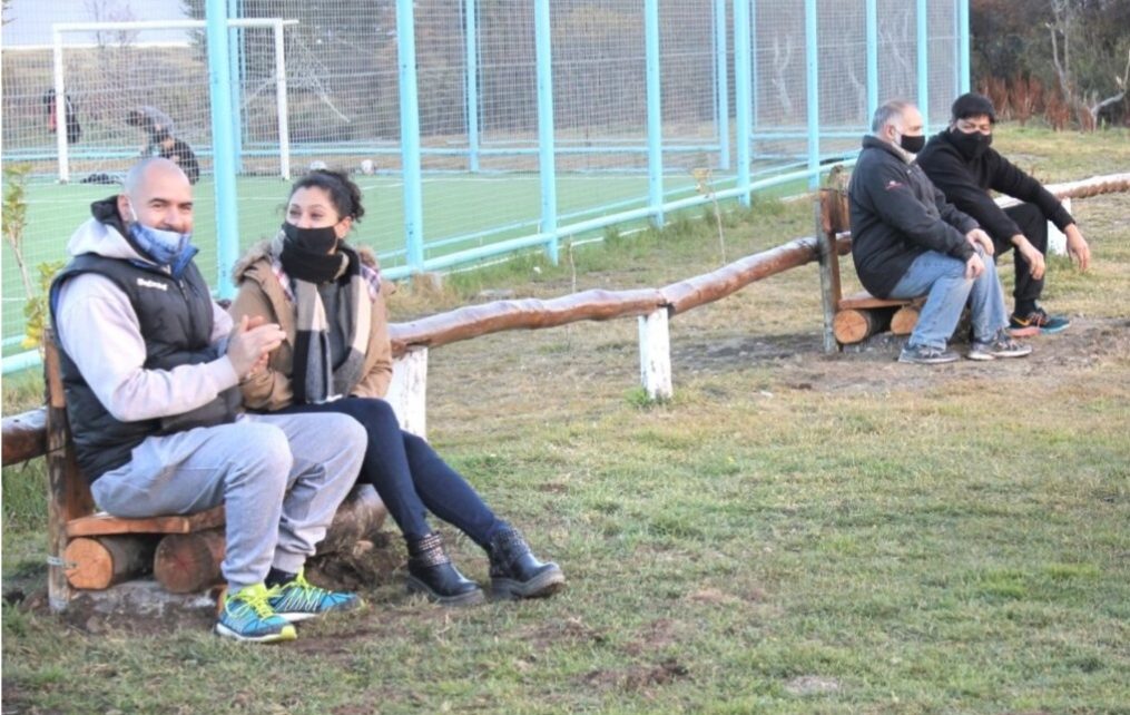 Llamé al aserradero Mancilla, de Tolhuin, y les expliqué que necesitábamos troncos para hacer bancos y me dijeron que sí, que contáramos con ellos. Con los troncos confirmados necesitábamos ver qué modelo o forma y quién los podía hacer y ahí fue cuando otro vecino me contactó con don Ricardo Arca, un carpintero que también se ofreció a colaborar. Para concretar los bancos seguíamos necesitando otros elementos que generosamente aportó la firma IMCOFUE, en la persona de Matías Bronzovich y por último, los materiales para amurar los bancos, nos los donó el concejal Javier Branca de la Cooperativa Casa Base, con lo cual… ¡los bancos se convirtieron en una realidad y hoy son disfrutados por los chicos y los grandes de nuestro querido barrio Malvinas!”.