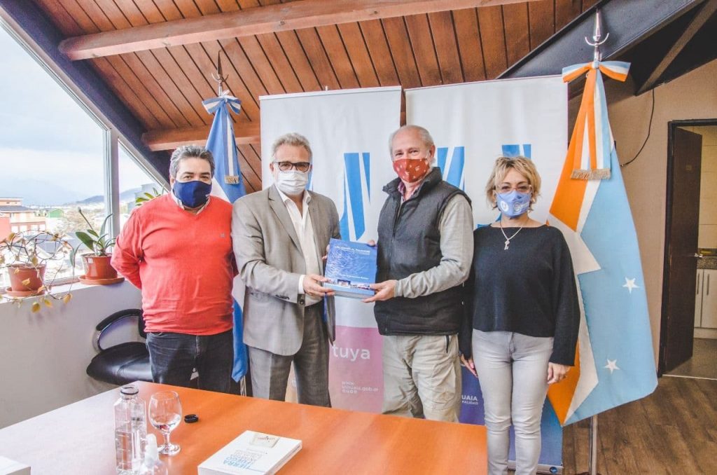 El jefe de Gabinete de la Municipalidad de Ushuaia, Mario Daniele, acompañado de la secretaria de Cultura y Educación María José Calderón y del secretario de Relaciones Parlamentarias y Articulación Política Omar Becerra entregaron en nombre del intendente Walter Vuoto al Dr. Adrián De Antueno la declaración de Interés de su libro “Del arpón al palangre. Historia y crónicas de la pesca en Tierra del Fuego, Antártida e Islas del Atlántico Sur”.