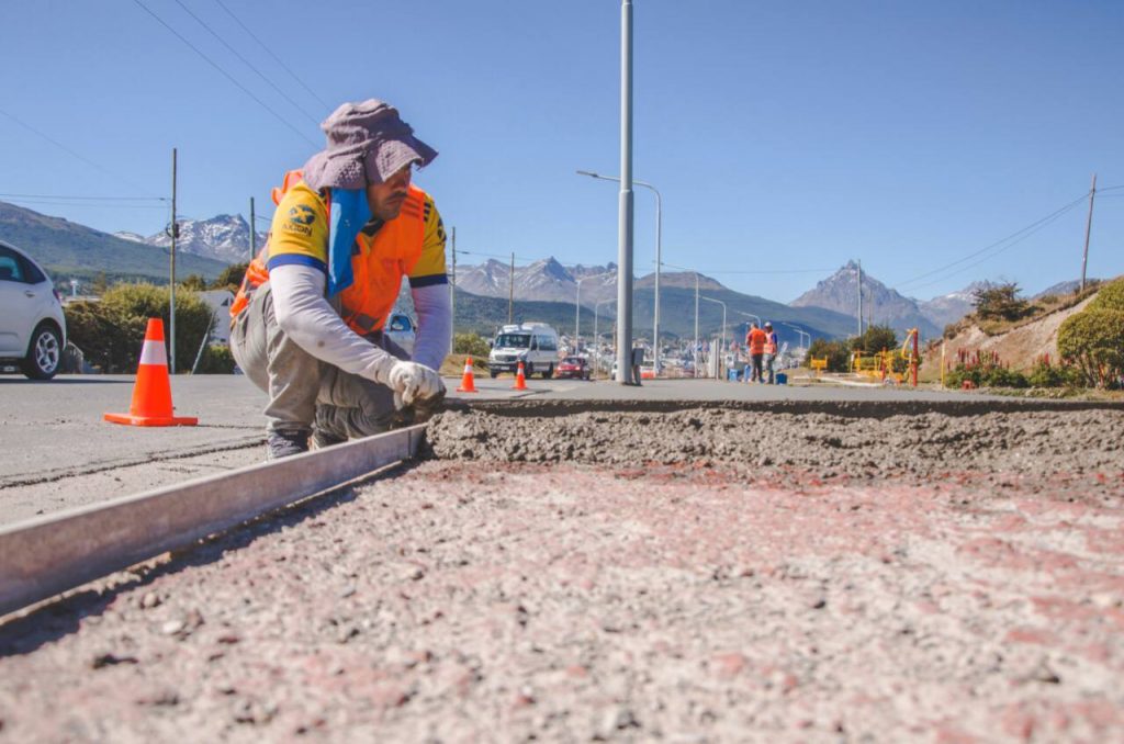 La Municipalidad de Ushuaia concluyó la construcción de veredas en el tramo de la calle Hipólito Yrigoyen, entre la rotonda de ingreso al aeropuerto y su intersección con Fuegia Basket, a lo largo de 1000 metros lineales.