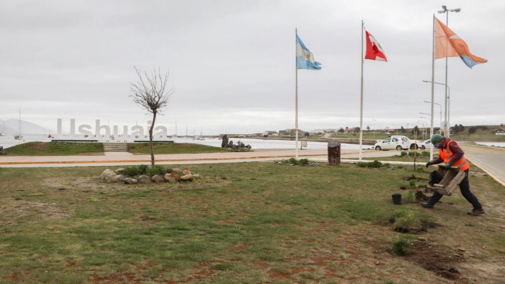 La Secretaría de Medio Ambiente de la Municipalidad de Ushuaia, a través de la Dirección de Parques y Jardines, realizó trabajos en plazoletas centrales, espacios verdes de plazas y canteros en la zona céntrica de la ciudad.
