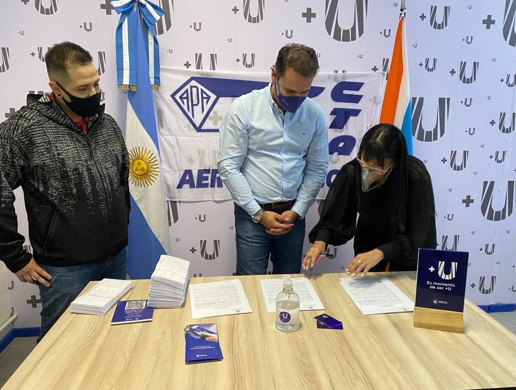El secretario de Desarrollo Económico de la Municipalidad de Ushuaia, Gustavo Ventura firmó junto a representantes de A.P.A. (Asociación Personal Aeronáutico) un convenio para la entrega y distribución de las tarjetas +U de la Municipalidad de Ushuaia a todos sus afiliados