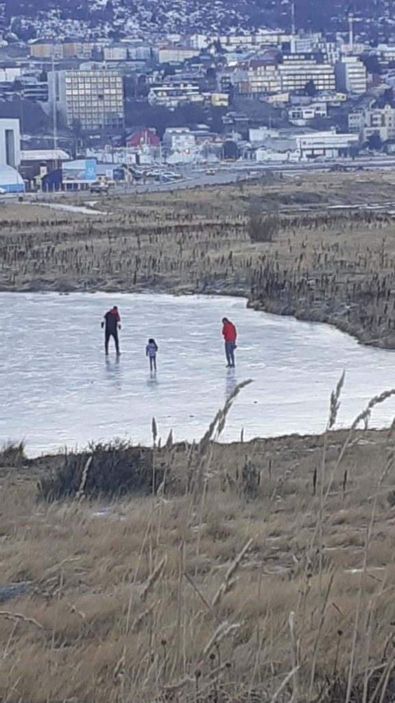 La Municipalidad de Ushuaia recuerda a la población que está terminantemente prohibido caminar o patinar sobre las capas de hielo formadas en la bahía Encerrada. Además de ser peligroso, se trata de un área protegida urbana, con restricciones en su uso.