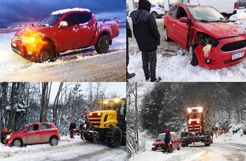 Varias choques se registraron esta mañana de miércoles en la ciudad de Ushuaia, por el estado resbaladizo de la calzada y la capa de nieve que cubre las mismas.